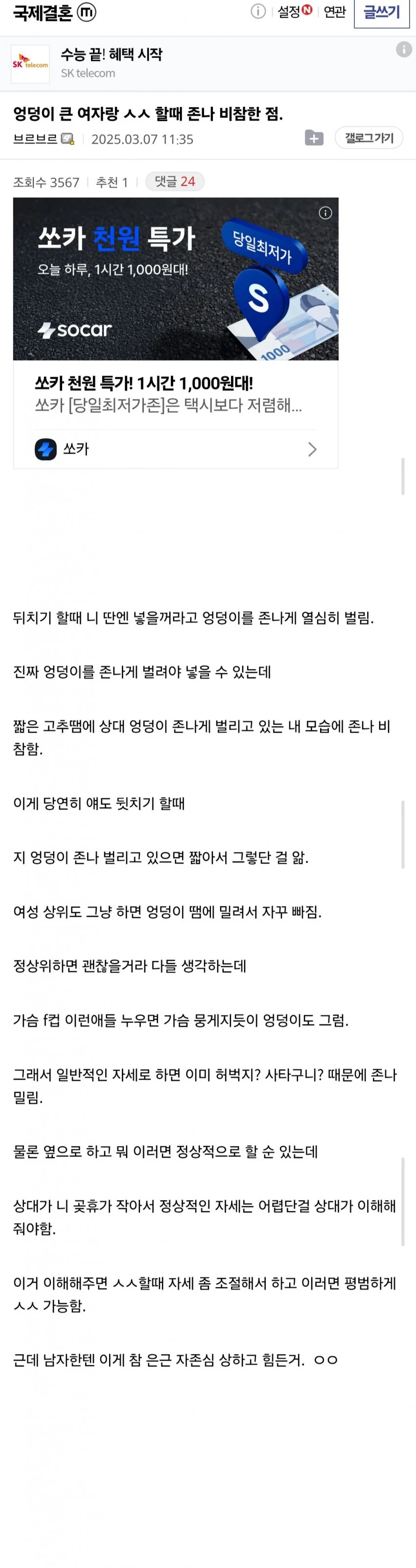 엉덩이 큰 여자랑 야스하면 비참해지는 이유 냥냥이 0 8 11.20 23:38 ★ 국내 유일 무료배팅 커뮤니티, 무료 토토배팅가능 ★ ★ 매주1,2,3위 문화상품권 지급 [올스포츠] ★ [클릭] 맛있는 애널용품! [클릭]